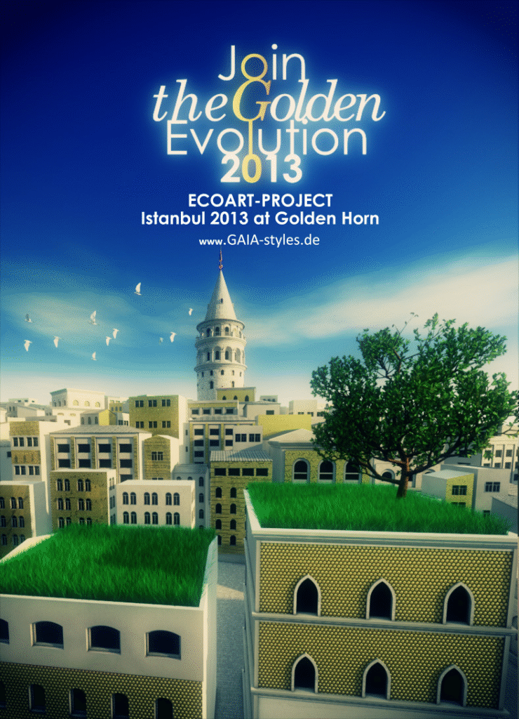 „Grünes Istanbul – Join the golden evolution!“ Das Ziel des ECOART-Projekts ist es, die notwendigen Dachsanierungsarbeiten im Stadtteil Beyoğlu zukunftsfähig zu gestalten. Mit einer einzigen Aktion werden alle Dächer rund um den Galata-Turm ökologisch verträglich begrünt und die Mauern als kunstvolles Projekt mit goldenen Pailletten verziert. Um die Entwicklung der lebhaften Megastadt am Ufer des Bosporus, die von Erdbeben bedroht ist, auf eine dauerhafte und starke Grundlage zu stellen, plant GAIA im Rahmen von Restaurierungsarbeiten die umfassende Begrünung aller baufälligen Dächer der historischen Innenstadt. Auf diese Weise wird die Temperatur im Stadtzentrum dauerhaft gesenkt und somit Energie durch Klimaanlagen eingespart. Gleichzeitig werden sich die allgemeinen klimatischen Bedingungen im Stadtzentrum verbessern und ein Vorbild für die Entwicklung der Stadt geschaffen.
